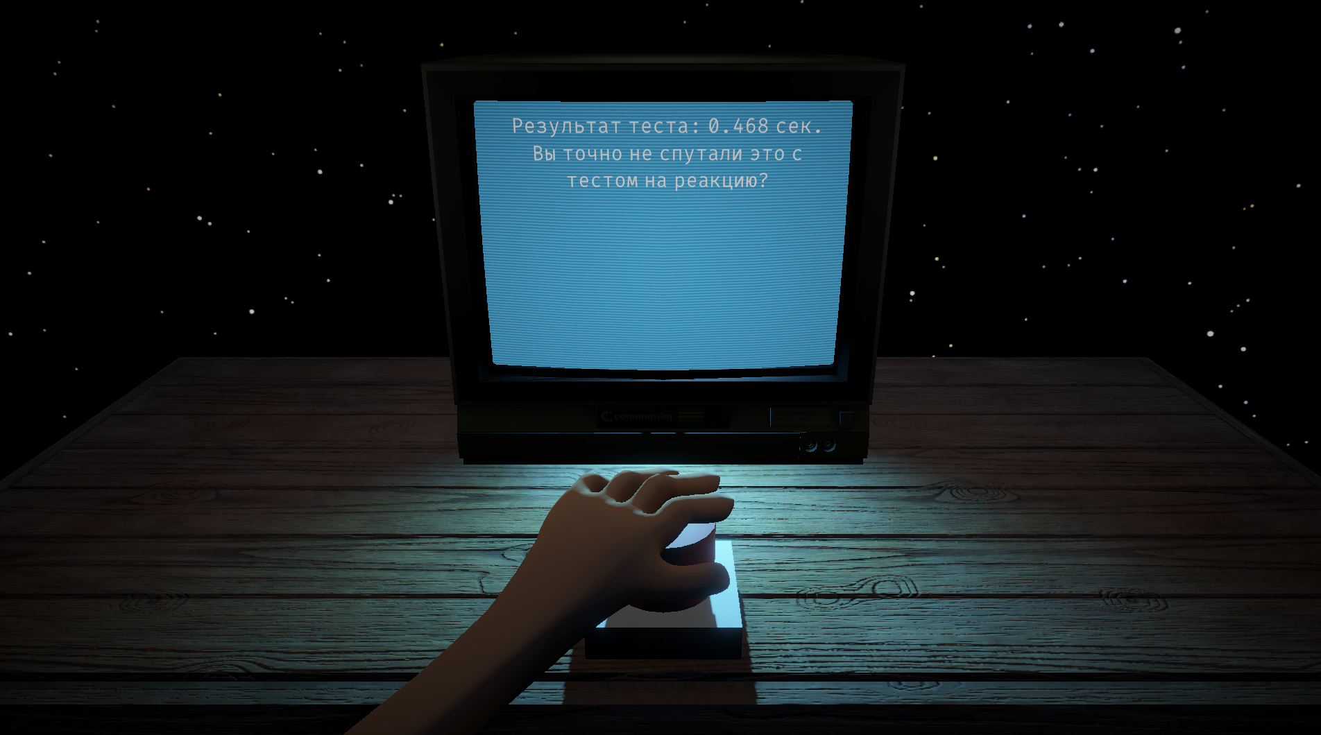Это минималистичный экспериментальный тест на реакцию, проверяющий зрение и слух игрока. Тебе предстоит пройти серию заданий, чтобы понять, насколько быстро и точно ты реагируешь на визуальные и аудио сигналы. В конце игру анализирует ИИ и сообщает, подходишь ли ты для дальнейших испытаний.
